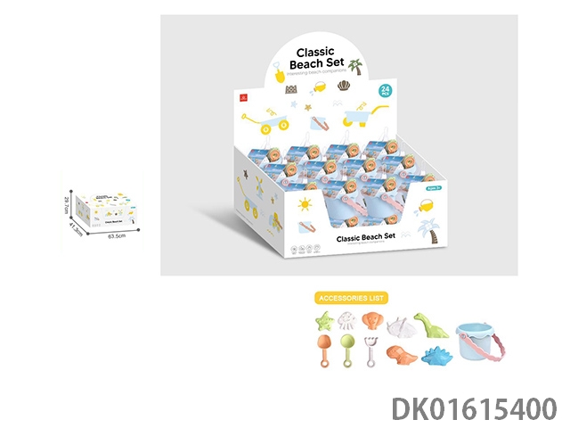 软胶城堡桶麦秆恐龙沙模小铲耙套装沙滩玩具11件套24只/盒