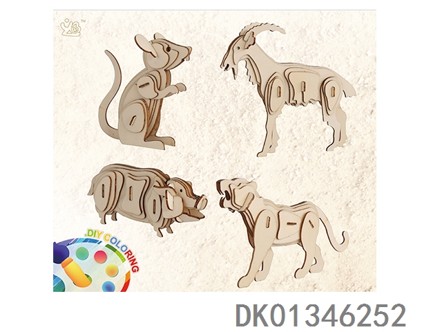 3D木质动物拼图4款