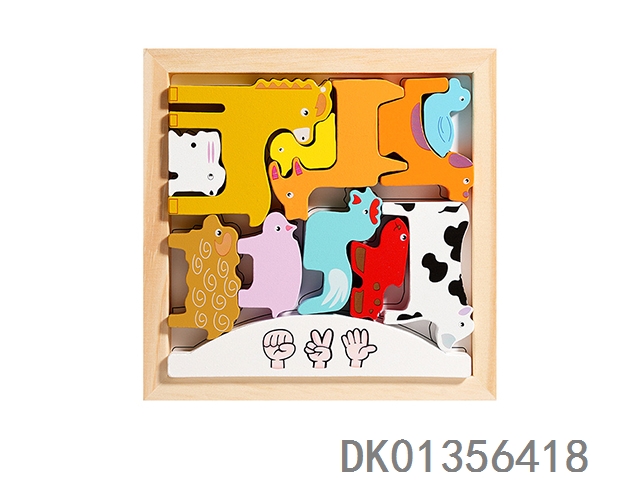 木制立体拼图叠叠乐二合一-农场动物