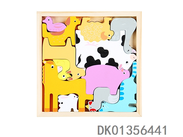 木制立体拼图叠叠乐二合一-公园动物
