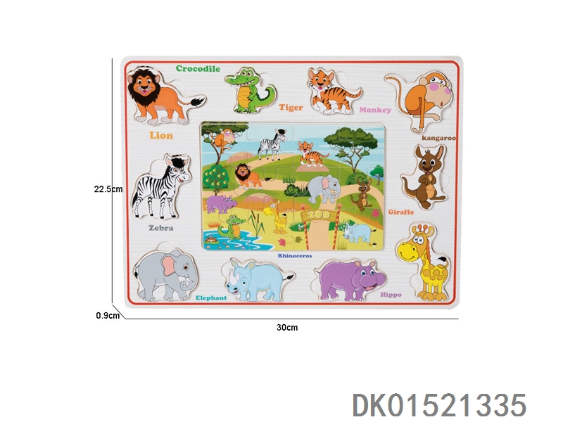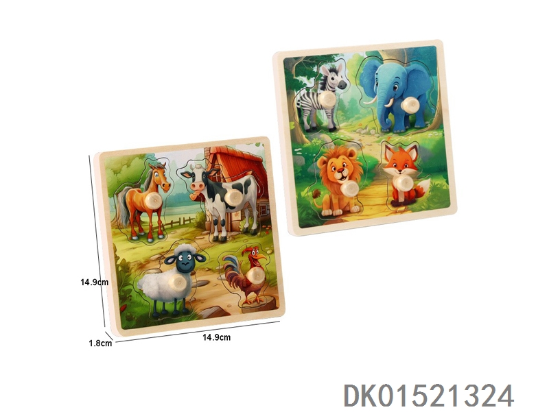 木质动物手抓板拼图益智玩具
