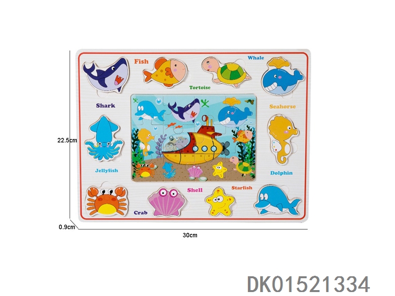 木质海洋动物手抓板拼图益智玩具