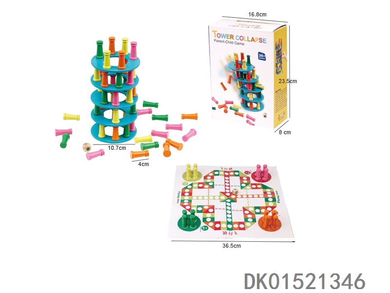 木质比萨塔叠叠高飞行棋二合一益智套装