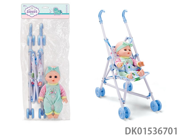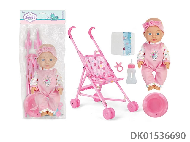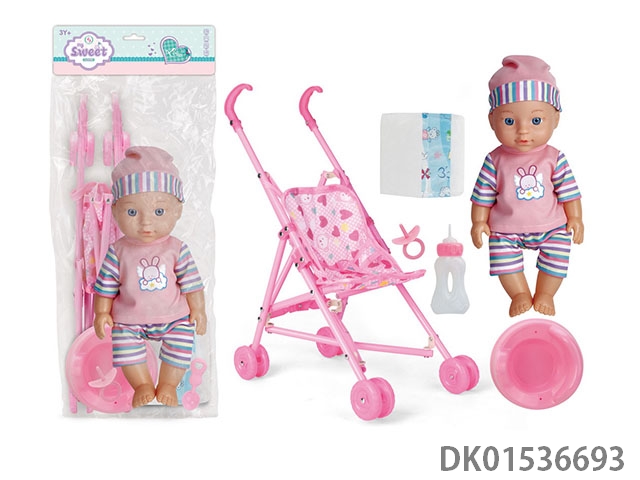 10寸娃娃加配件 吹瓶身带四声IC带推车(爸/妈/哭/笑)
