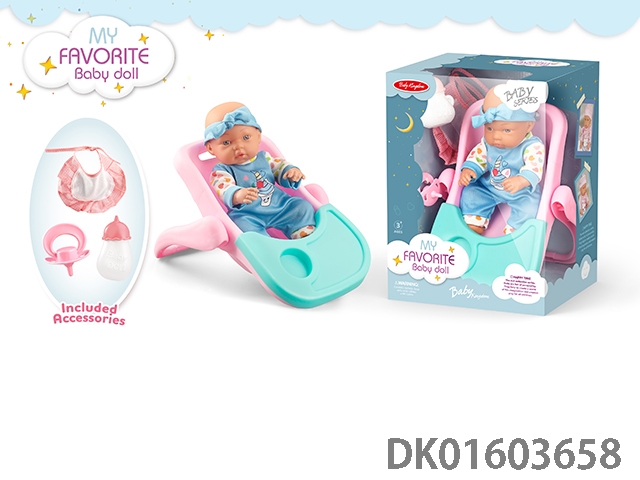 12寸公仔带IC+餐椅+奶瓶+餐具+奶嘴,包3*AG13