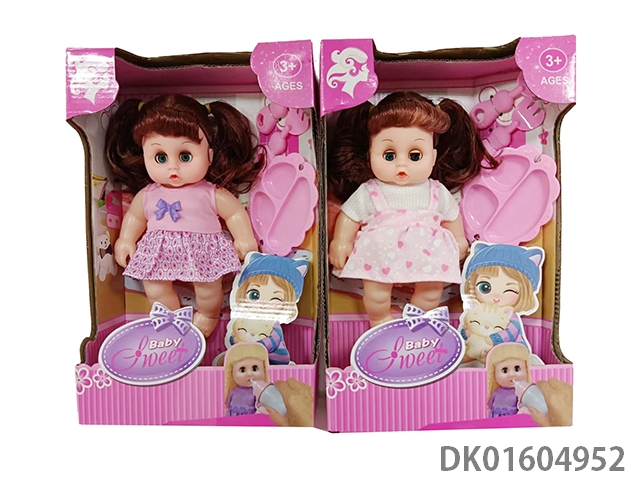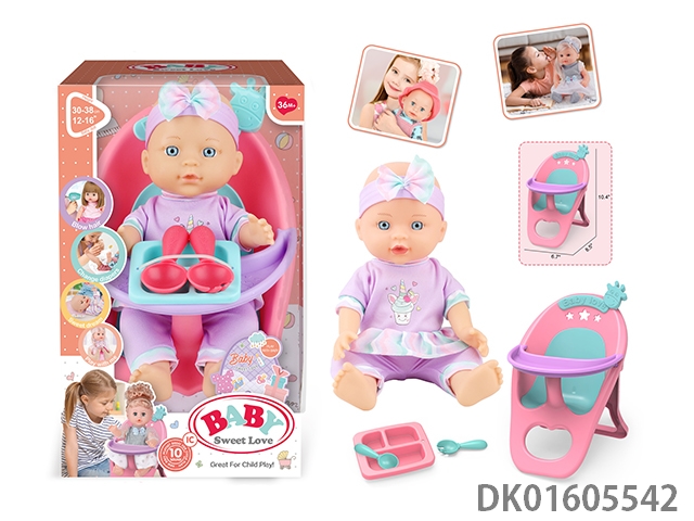 12寸定眼娃娃 无IC 搪胶头吹塑身手脚 + 餐椅+小餐盘+叉子+勺子