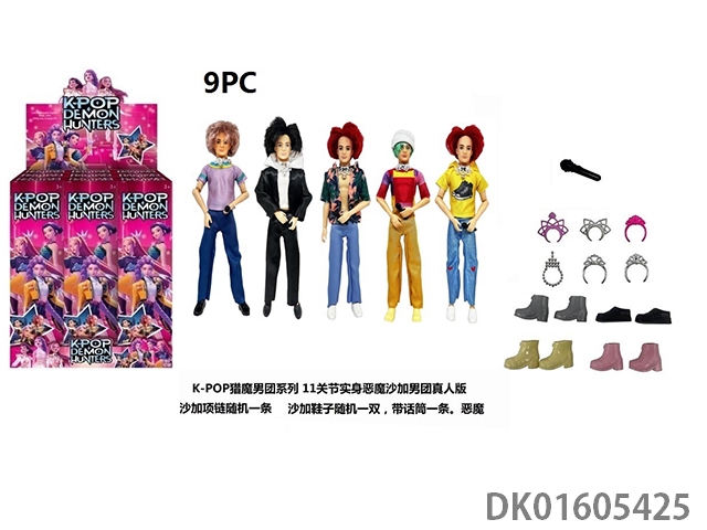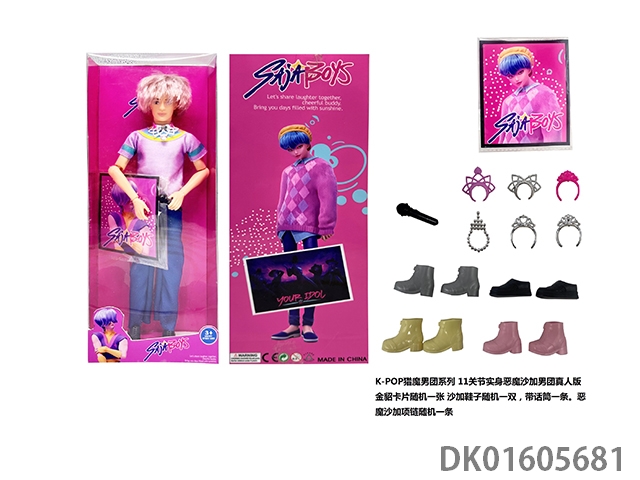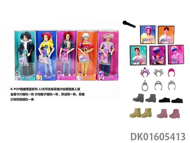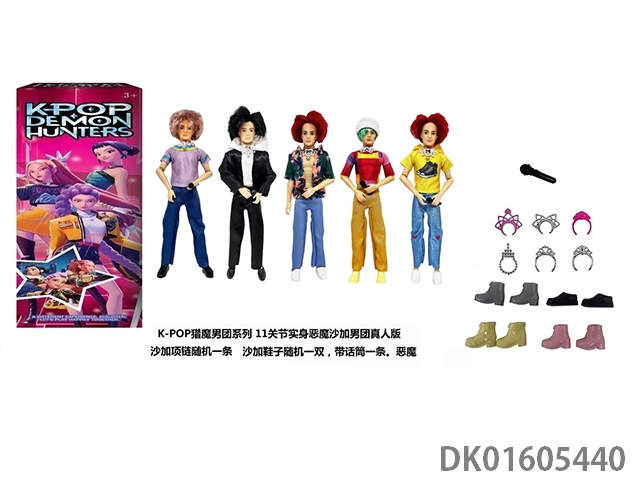 1比1 K-POP 猎魔男团真人版 11.5寸11关节实身 5人猎魔男团 带金貂卡片一张 带项链 带话筒