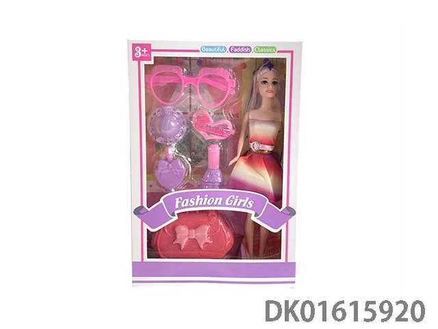 大腿11.5实身时尚芭比娃娃女孩配眼镜+帽子+发夹+香水瓶+手提包(时尚芭比公主娃娃)