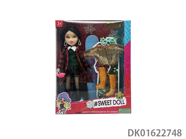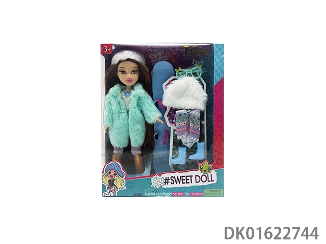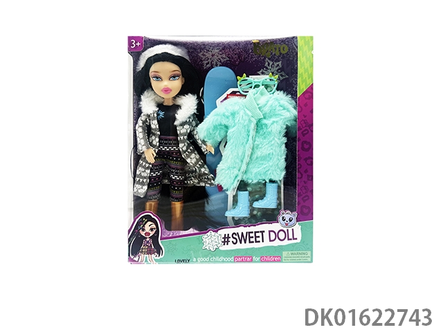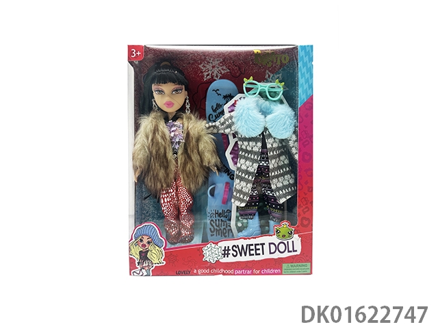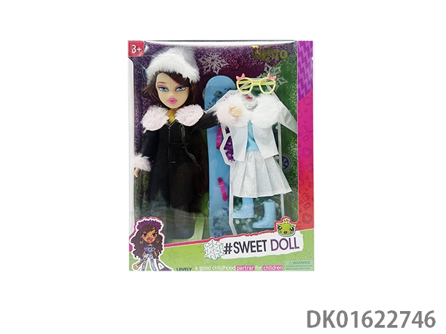 OMG BRATZ 冬天系列10寸大脚大腿实身毛绒大头贝兹娃娃带滑冰套装带一件毛绒衣服
