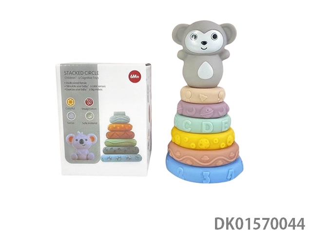 搪胶软胶叠叠乐玩具可啃咬积木益智早教玩具6只加动物装盒装搪胶动物叠叠乐叠叠圈搪胶玩具