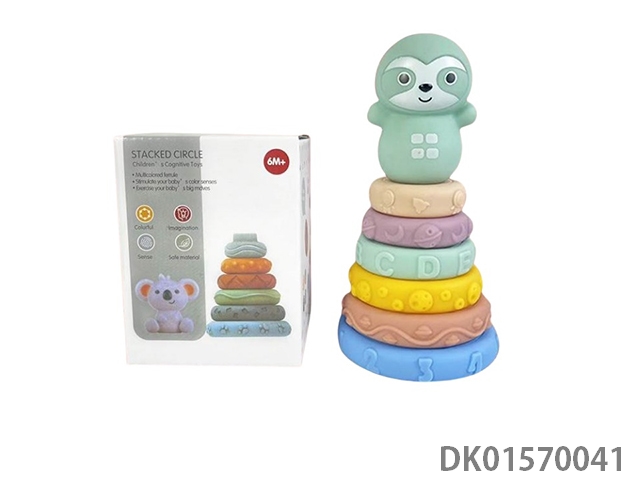 搪胶软胶叠叠乐玩具可啃咬积木益智早教玩具6只加动物装盒装搪胶动物叠叠乐叠叠圈搪胶玩具