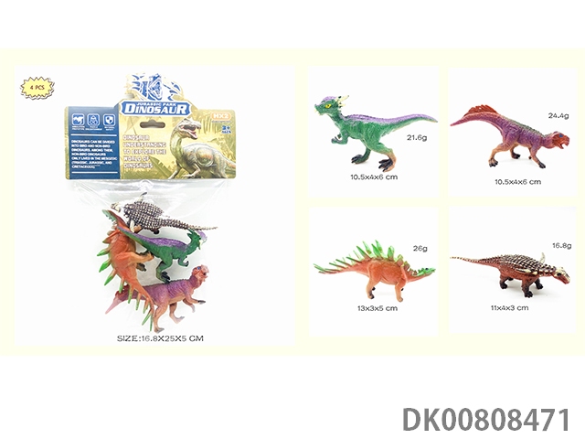 4寸仿真实身聚氯恐龙4只装(甲龙+鹦鹉龙+肿头龙+钉状龙)