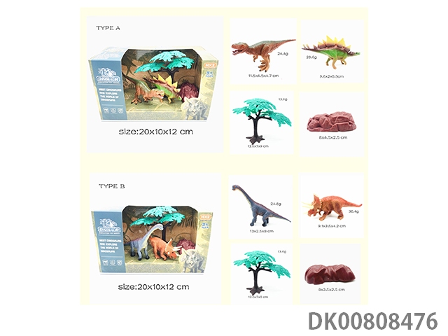 4寸实身聚氯恐龙2只+树+石头盒装(两款混)