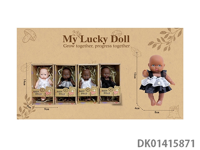 12cm全搪胶手掌娃娃女孩裙四款混装