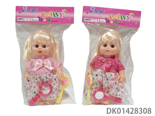 12寸搪胶身活动眼女娃梳镜3款混装