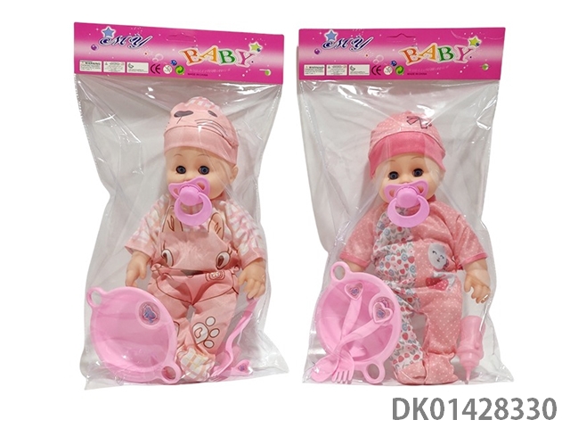 14寸搪胶身音乐活动眼男娃奶瓶2款混装