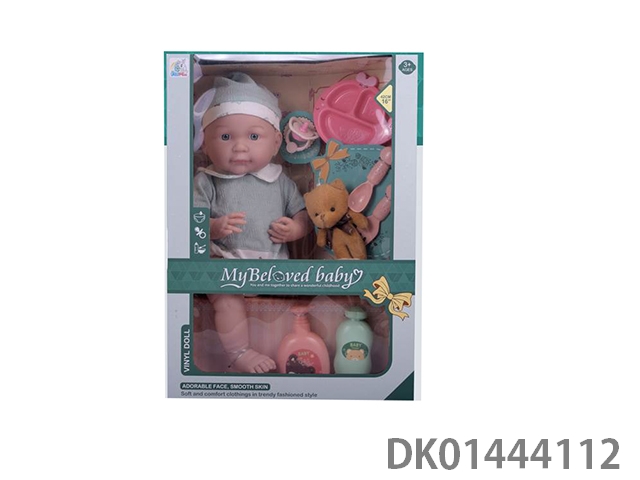 16寸时尚衣服全搪胶娃娃配奶嘴及棉熊及餐具奶嘴