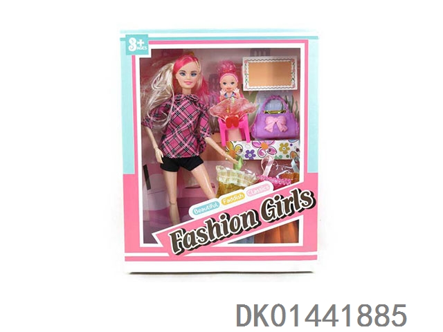 新款11寸实身时尚女孩短装,带小孩和包包