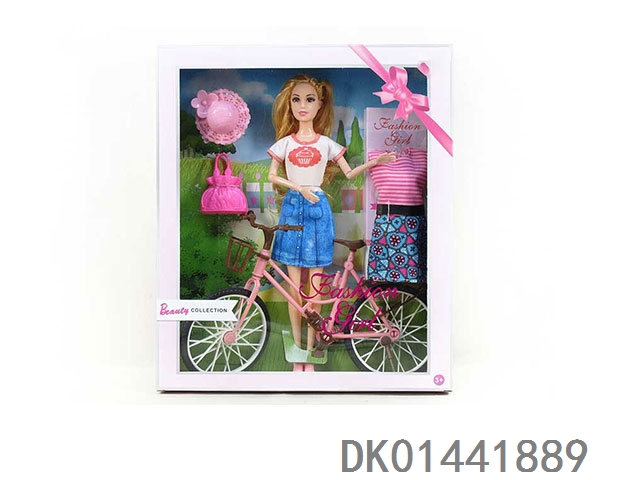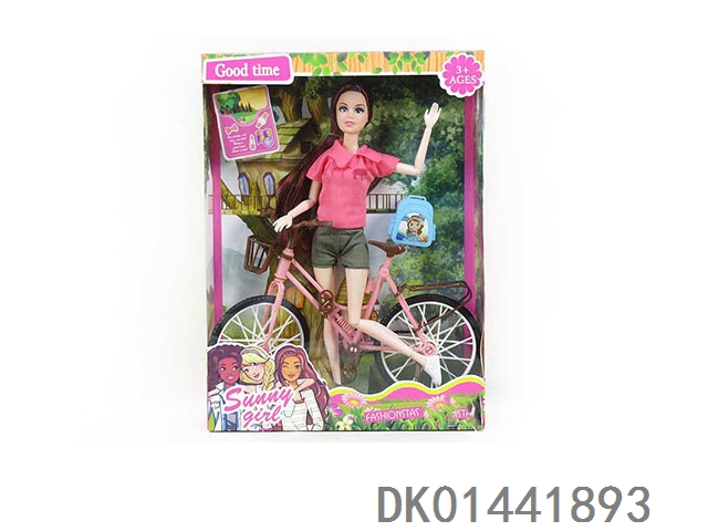 新款11寸实身11关节短装女孩,带自行车,书包