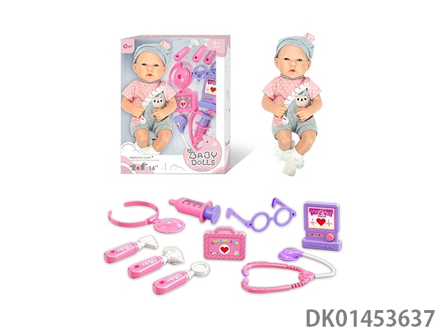 14寸全搪胶初生婴儿娃娃医具套装