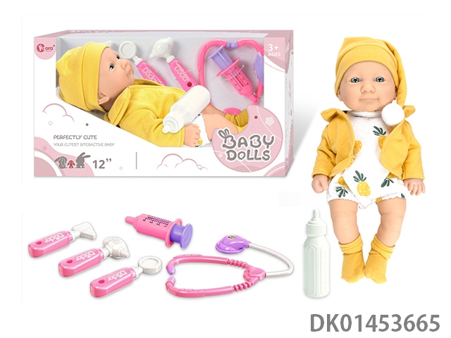 12寸全搪胶初生婴儿娃娃医具套装