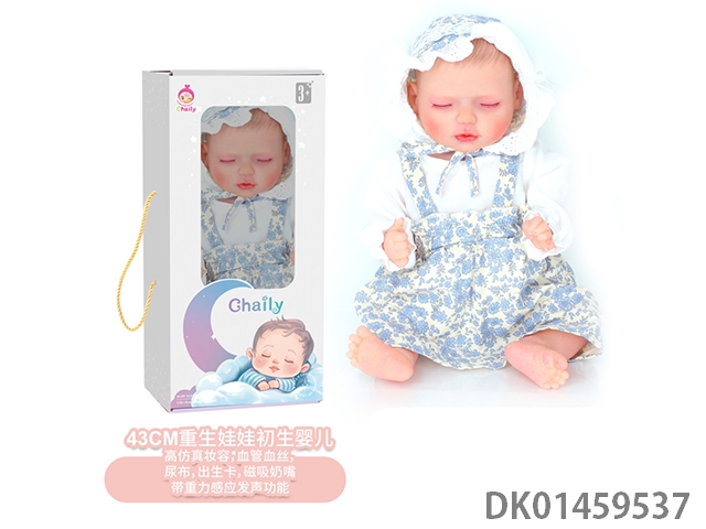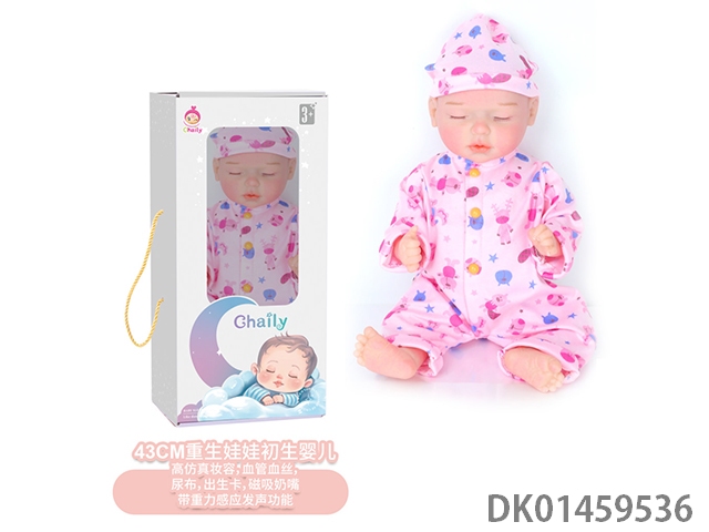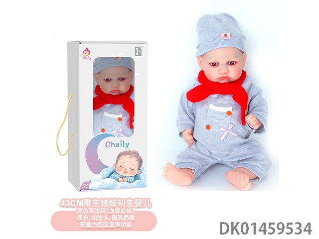 全身软胶主体,四肢软胶可转动43cm重生娃娃初生婴儿,高仿真妆容,血管血丝,尿布,出生卡,奶瓶,磁吸奶嘴