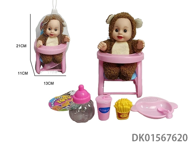 10寸搪胶毛绒衣服表情娃配餐椅奶瓶薯条餐盘可乐配件