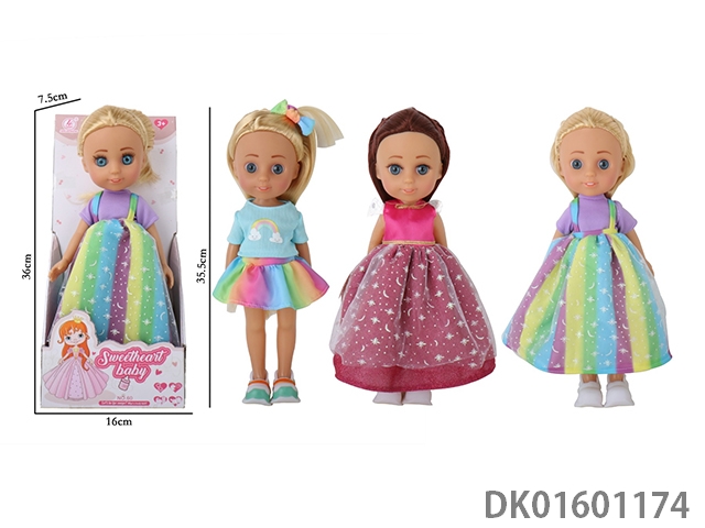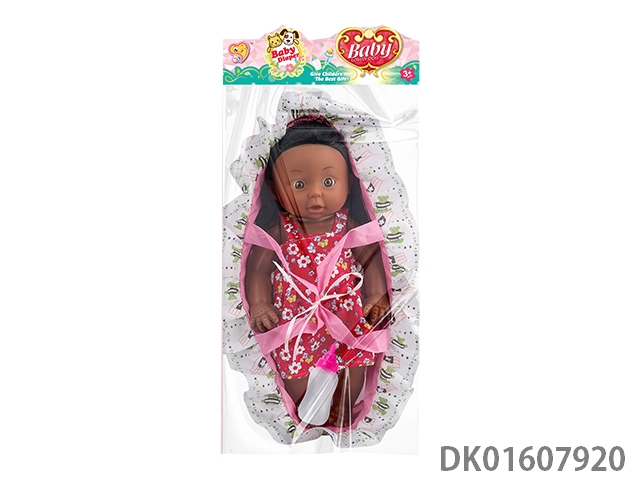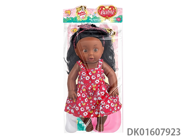 14寸搪胶会尿尿黑妹娃娃女带12声IC配奶瓶+尿裤,尿盆