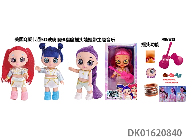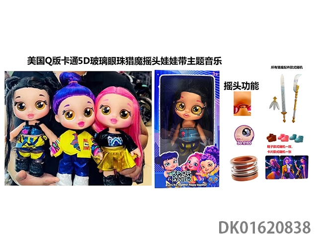 1比1美国Q版卡通5D真眼珠14寸全搪胶猎魔摇头娃娃带摇头功能带音乐主题曲带金貂卡片一张带对折吉他一条