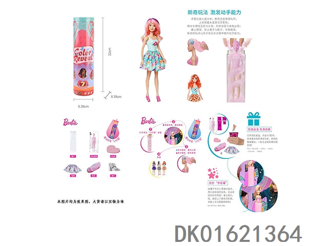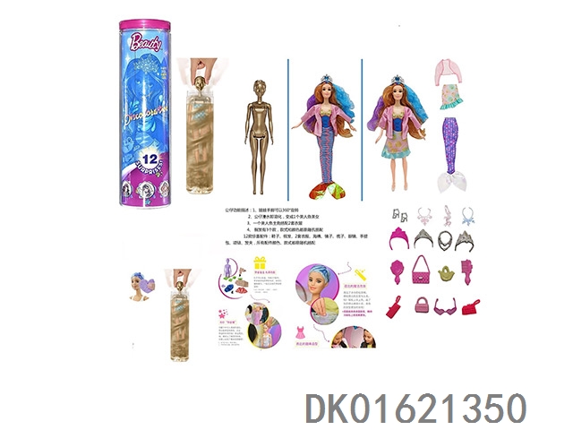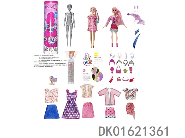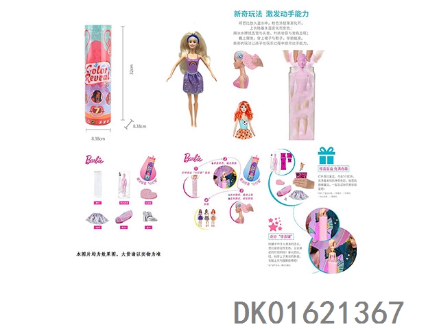 11.5寸实身惊喜变色芭比。带5样不同的惊喜配件,娃娃360度旋转,带说明书