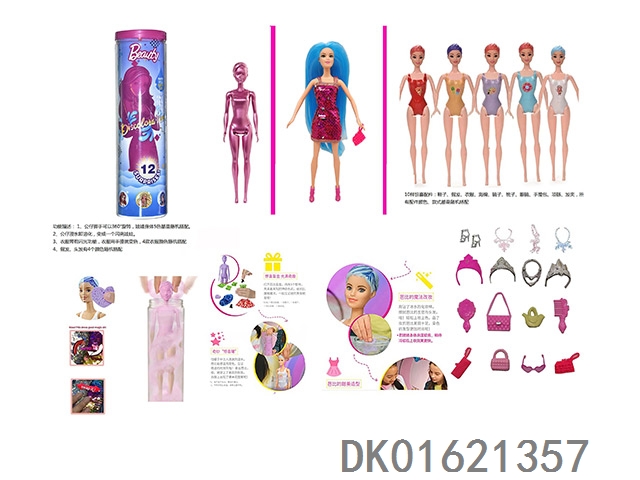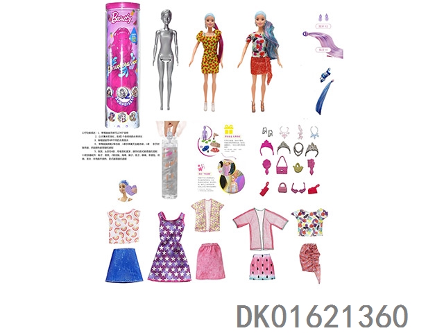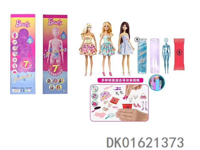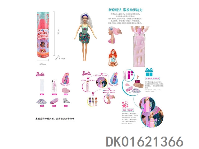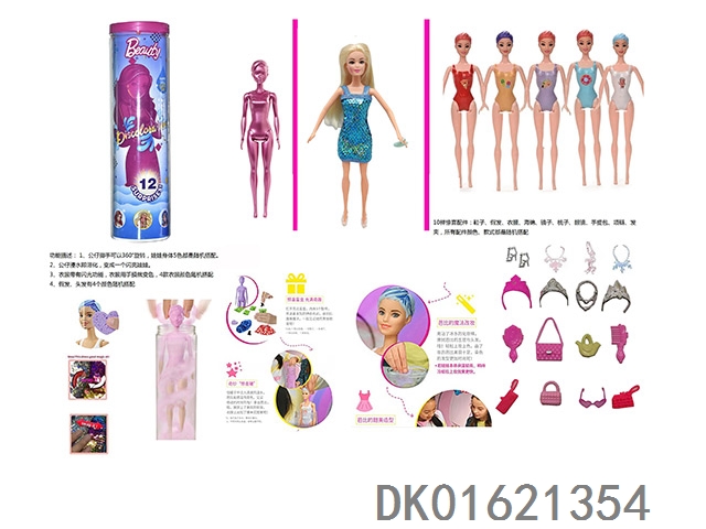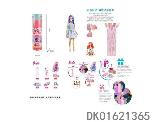 11.5寸实身惊喜变色芭比。带5样不同的惊喜配件,娃娃360度旋转,