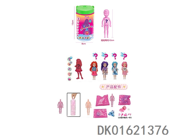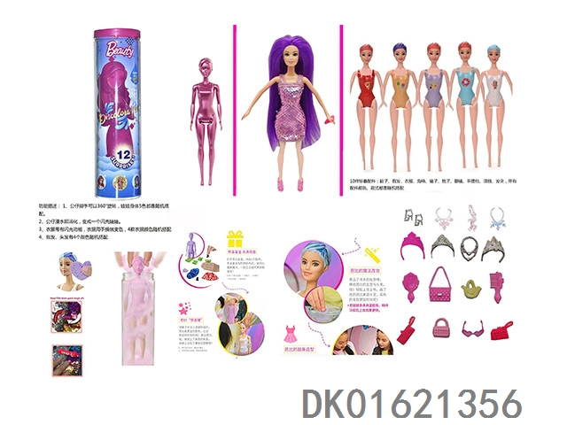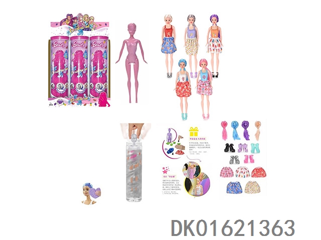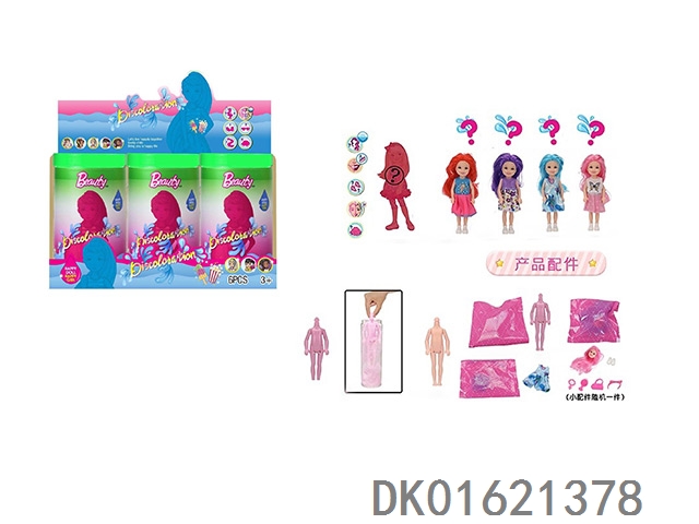 11.5寸实身惊喜变色芭比。带5样不同的惊喜配件,娃娃360度旋转,4款随机混装6pcs/box
