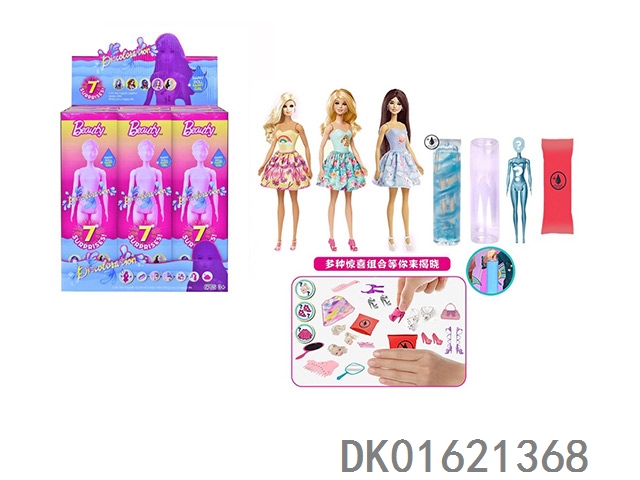 11.5寸实身变色芭比。带不同的惊喜配件,娃娃360度旋转,3款随机混装6pcs/box