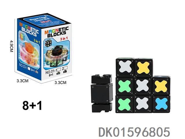 实色夜光磁力陀螺(4款4色)(黄+绿+蓝+粉红)磁力块9个+1个陀螺