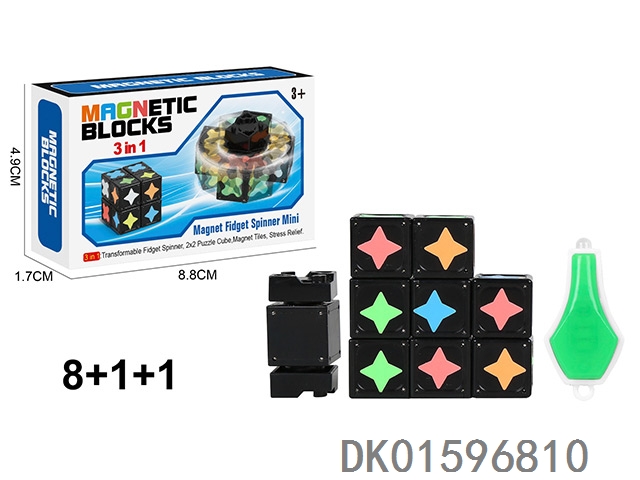 夜光磁力陀螺(圆角标)(圆磁)磁力块8个+1个陀螺