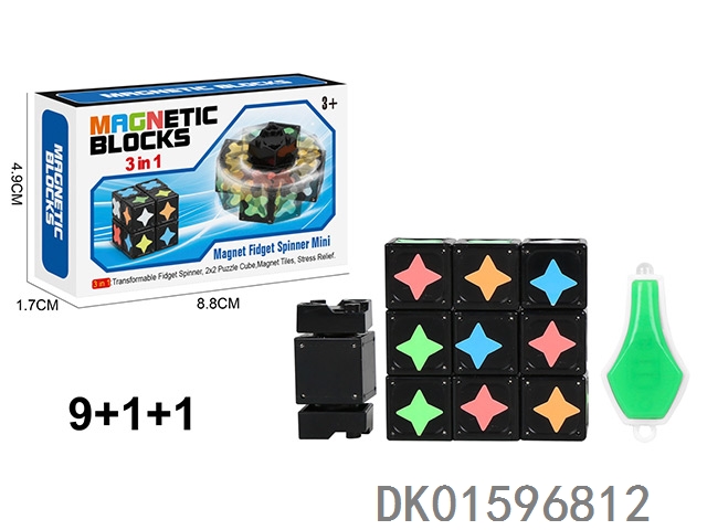 夜光磁力陀螺(圆角标)(圆磁)磁力块9个+1个陀螺
