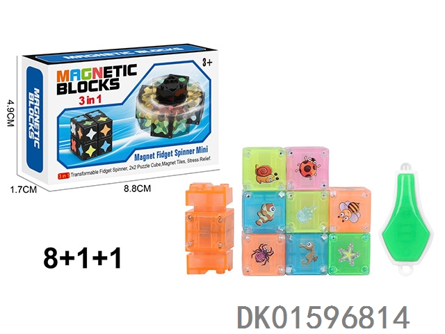 夜光磁力陀螺(尖角标)(方磁)磁力块8个+1个陀螺