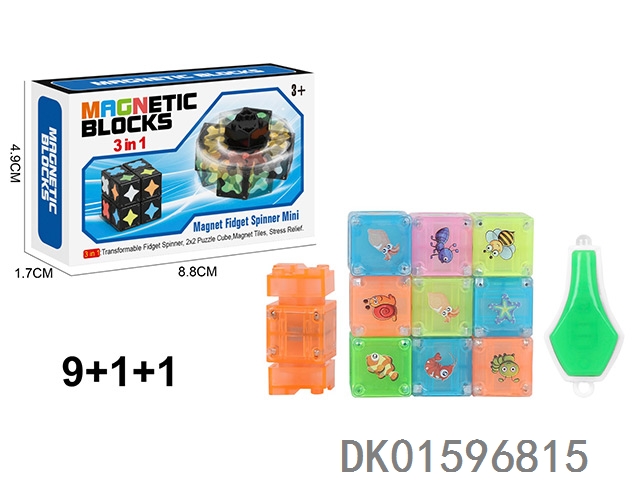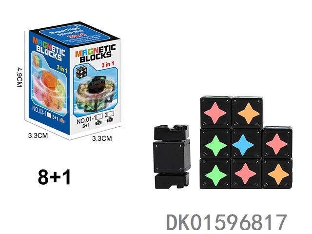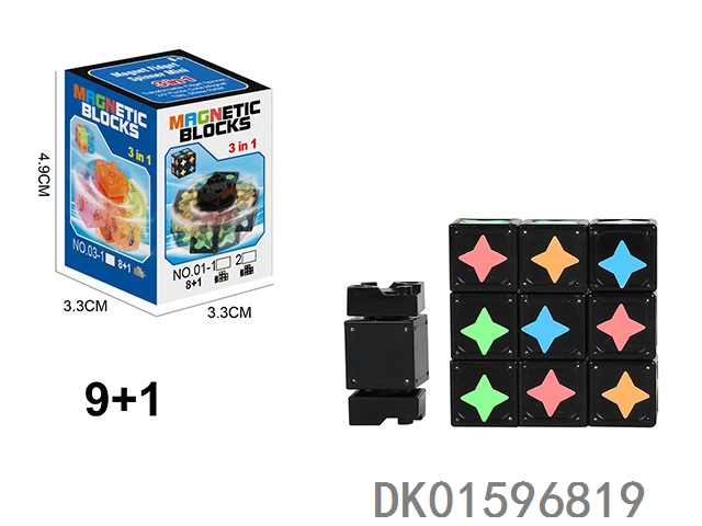 夜光磁力陀螺(尖角标)(方磁)磁力块9个+1个陀螺