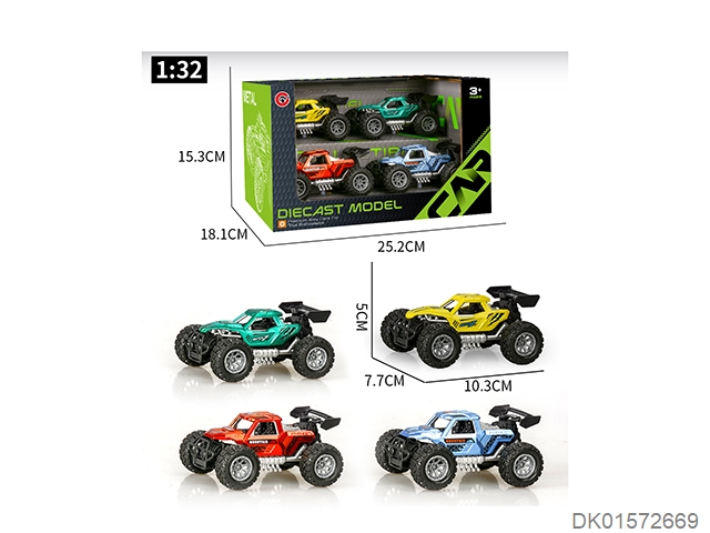 1:32合金惯性单座骨架越野车(4只装)