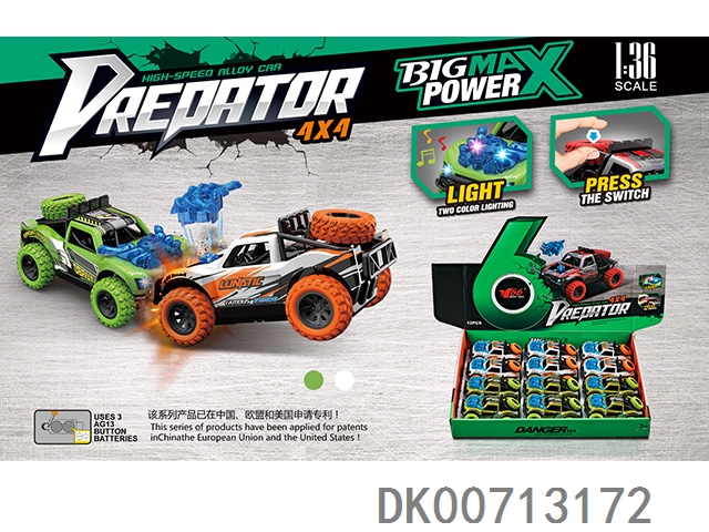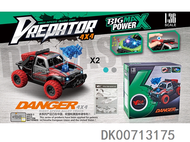1:36合金回力4驱越野车碰撞弹机头/备胎按压带灯光音乐