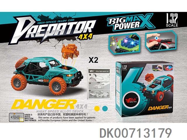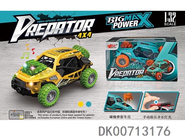 1:32合金回力4驱越野车碰撞弹机头/备胎按压带灯光音乐