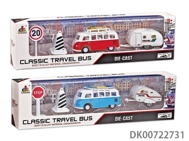 合金回力巴士旅行拖车组合