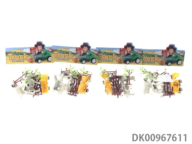 回力工程车配动物护栏树