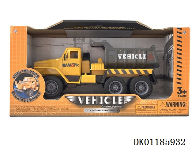 工程车平底回力仿真大斗自卸小卡车三开门声光玩具车