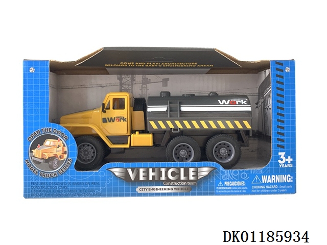 工程车平底回力仿真油灌小卡车三开门玩具车
