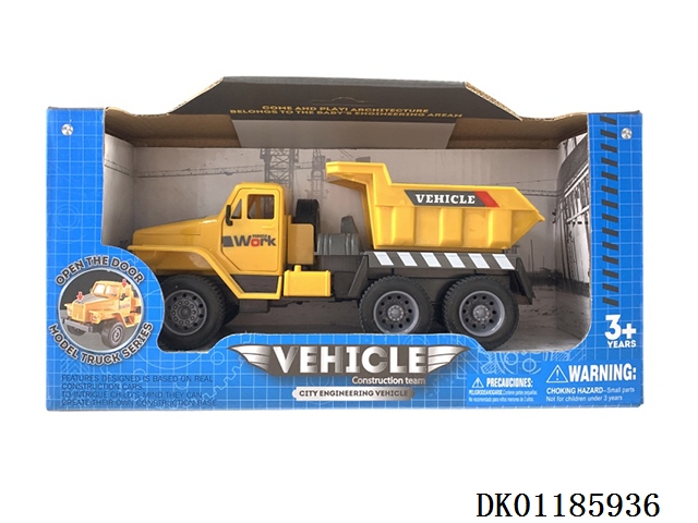 工程车平底回力仿真小斗自卸小卡车三开门玩具车