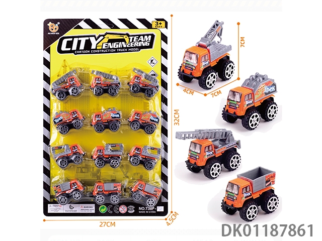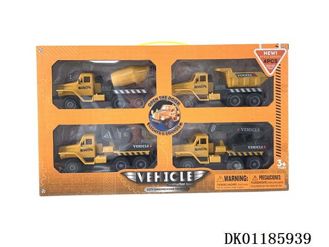 工程车平底回力仿真搅拌运输、挖掘、升降吊机组合小卡车三开门声光玩具车