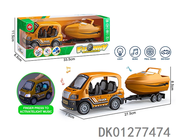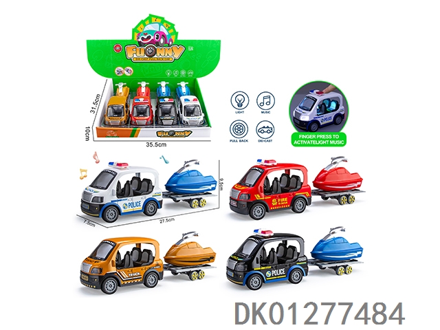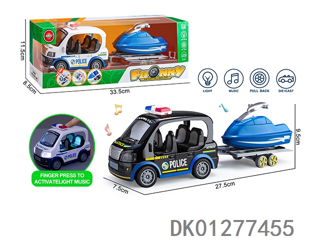 合金Q版警车拖摩托艇