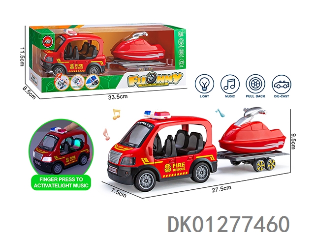 合金Q版消防车拖摩托艇