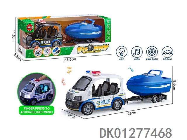合金Q版警车拖快艇